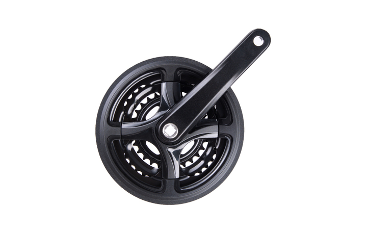 Korba aluminiowa w kolorze czarnym, o konfiguracji zębatek 42/34/24. Idealna do różnorodnych zastosowań w rekreacyjnej jeździe na rowerze. Zastosowanie wysokiej jakości aluminium zapewnia lekkość oraz wytrzymałość. Elementy systemu napędowego roweru pochodzą od renomowanej marki CTM, co gwarantuje ich niezawodność. Korba ta jest doskonałym wyborem dla pasjonatów jazdy na świeżym powietrzu.